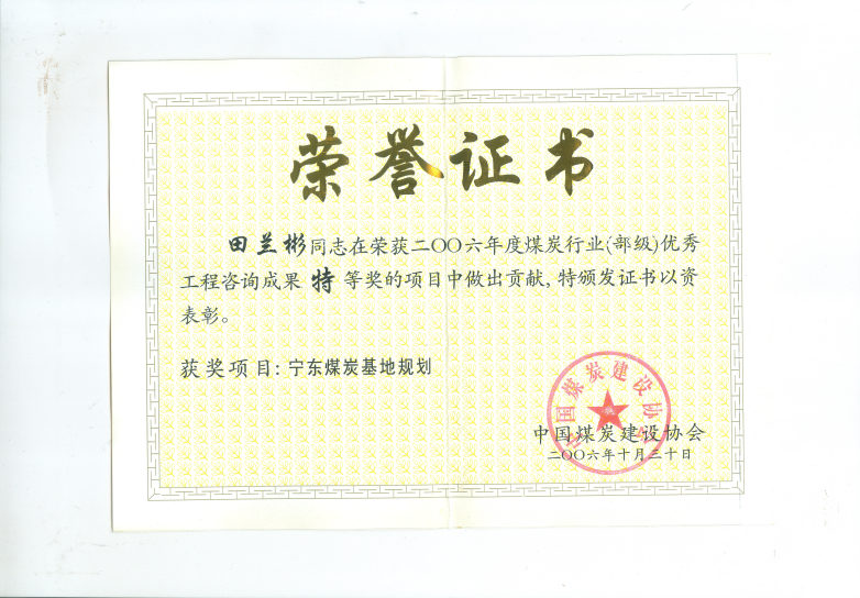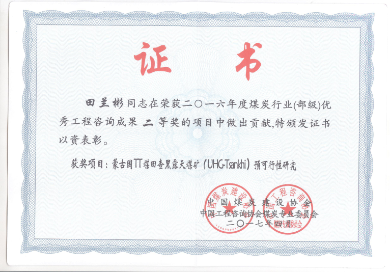 田兰彬,男,山东定陶人,煤炭行业设计大师,教授级高工,北京华宇工程有限公司,副总工程师,中国煤炭工业技术委员会委员,中国工程建设标准化协会贮藏构筑物专业委员会委员。中国煤炭建设协会建筑结构专业资深专家。财政部、北京市评标专家库专家。国家一级注册结构工程师、国家注册咨询工程师、监理工程师。曾获国家科技能源科技进步二等奖1项,全国优秀工程设计金奖1项、银奖1项。中国煤炭工业协会科学技术三等奖1项。煤炭行业(部级)优秀工程咨询成果特等奖1项、二等奖1项、三等奖1项,优秀工程设计一等奖4项,二等奖3项、三等奖4项。发表论文6篇。