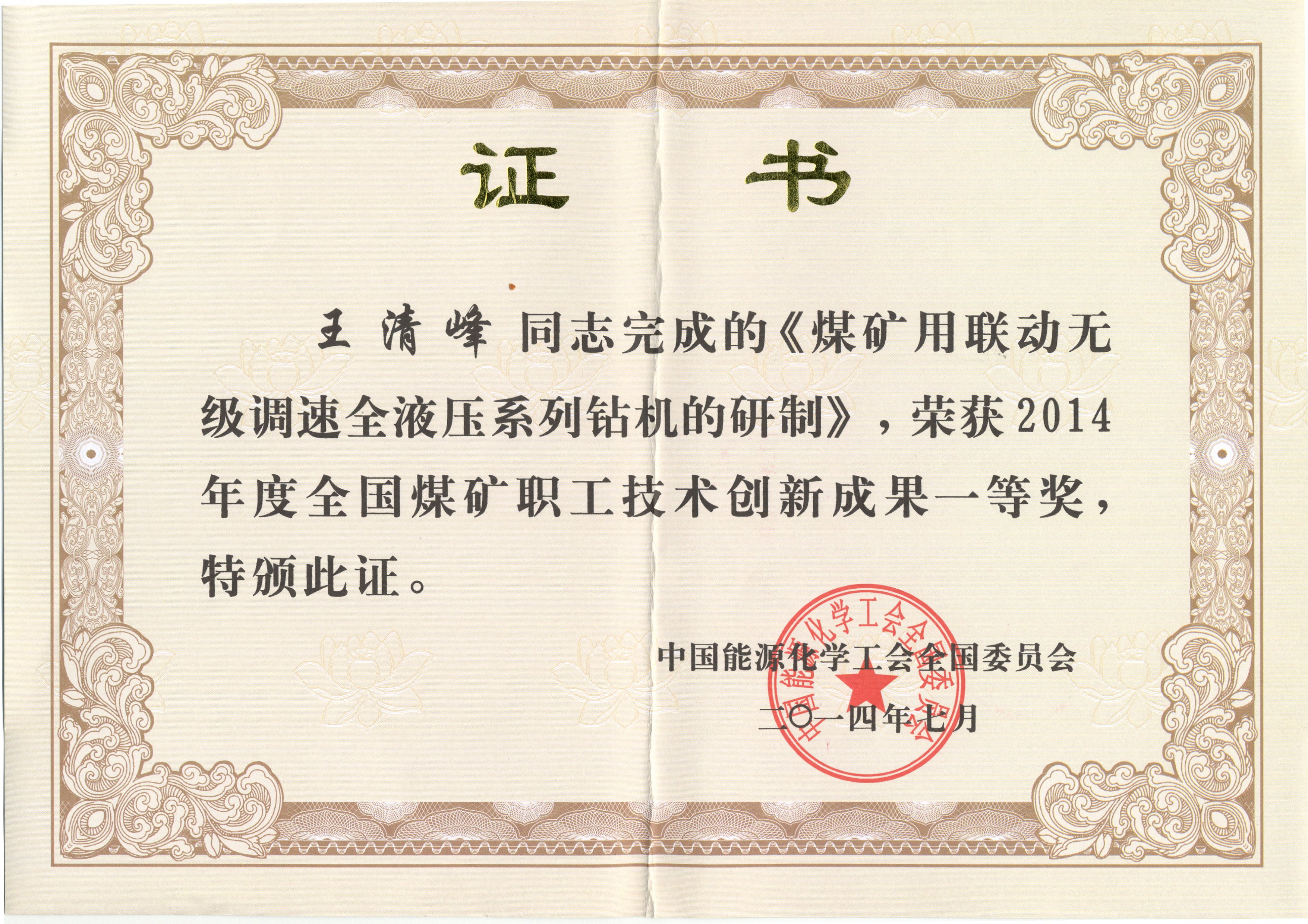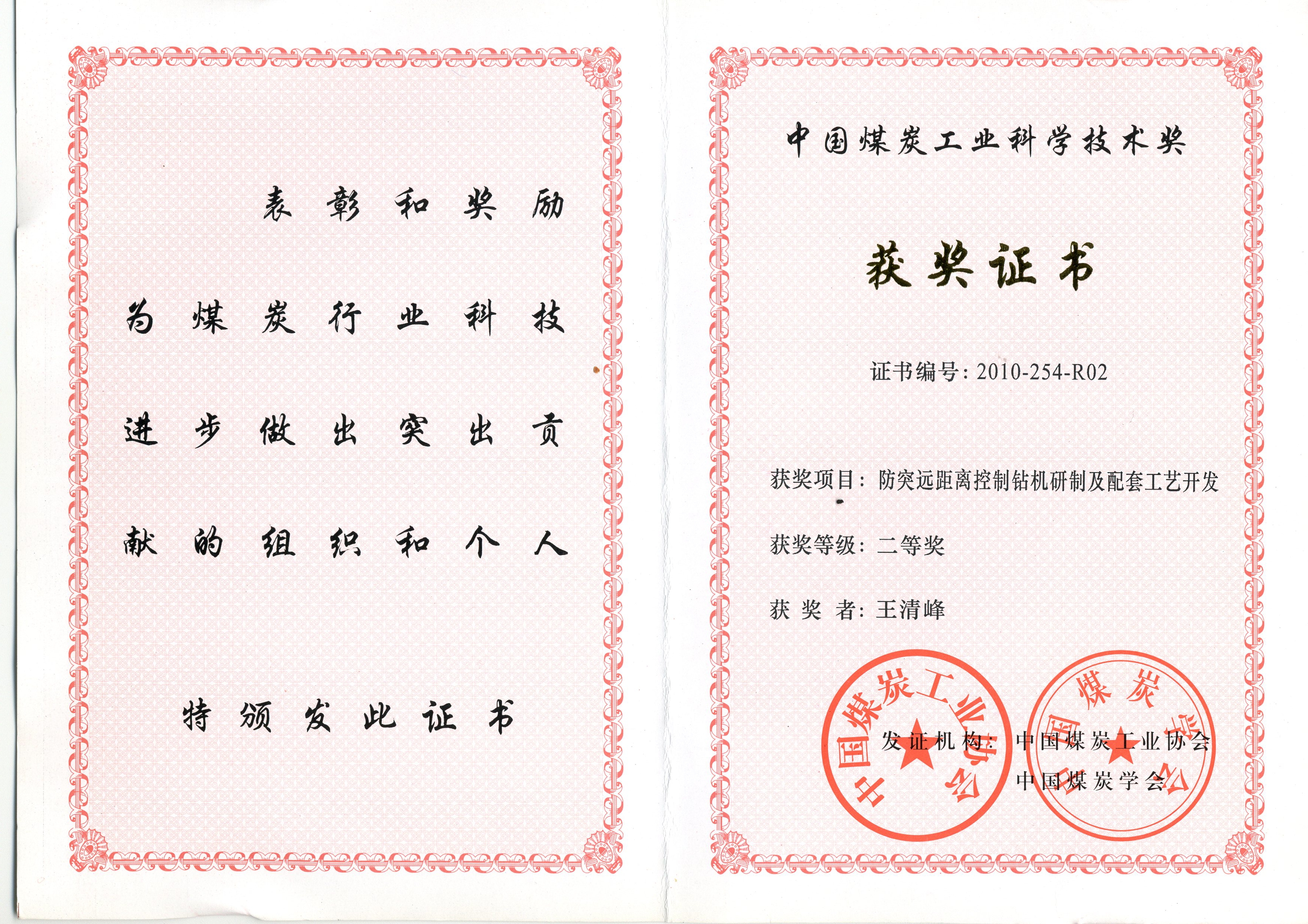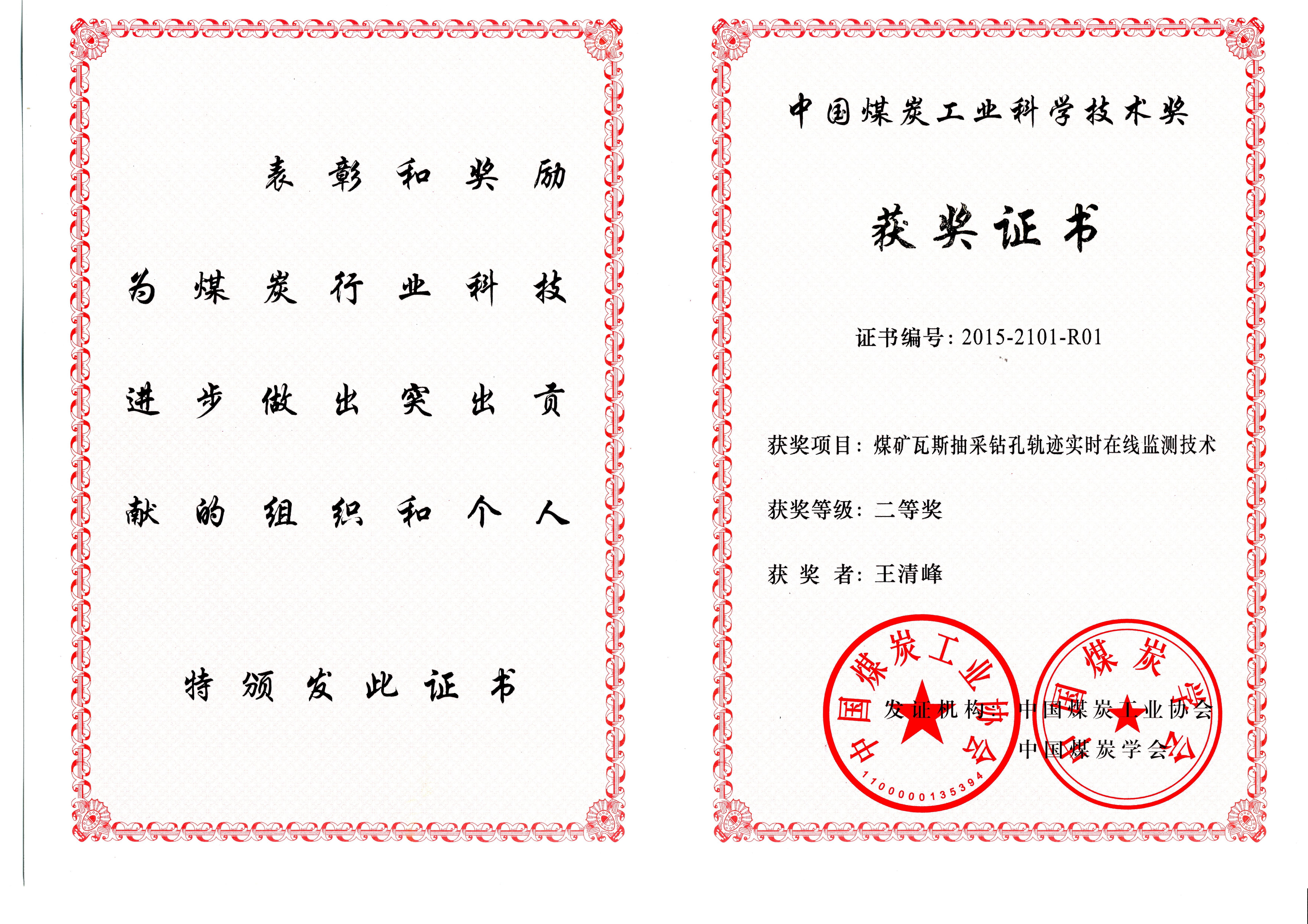 (1)作为主研人员,参加了国家“九五”攻关项目“突出煤层定向长钻孔预抽本煤层瓦斯的研究”的研究。项目成果获得煤炭工业协会科学技术一等奖。