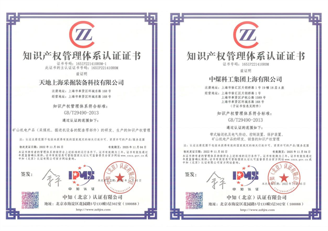 近日,中煤科工集团上海有限公司和天地上海采掘装备科技有限公司知识产权贯标工作取得重大成果,成功取得“知识产权管理系统认证证书”。