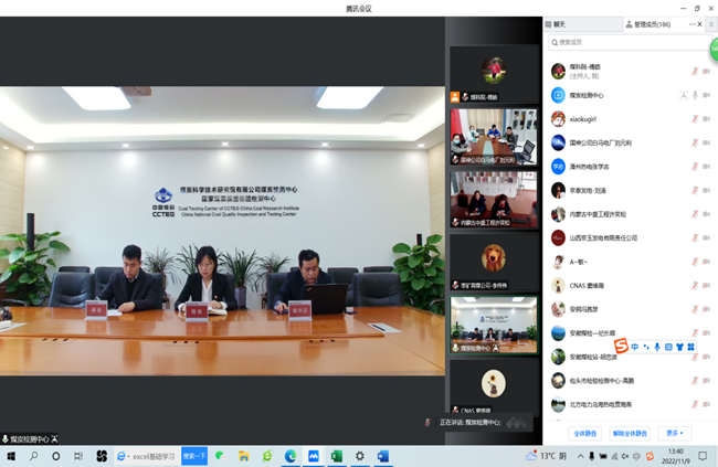 11月9日,煤科院组织召开2022年度煤炭检测领域实验室能力验证总结会暨煤质检测技术交流会。来自我国煤炭、电力、地质矿产、质检、海关、节能、冶金、化工等行业的310家实验室近千人通过腾讯会议系统参加了本次会议。此次会议的召开,对于推动煤炭行业实验室煤炭检验检测能力标准化建设、引领推动煤炭检测技术高质量发展具有重要意义。