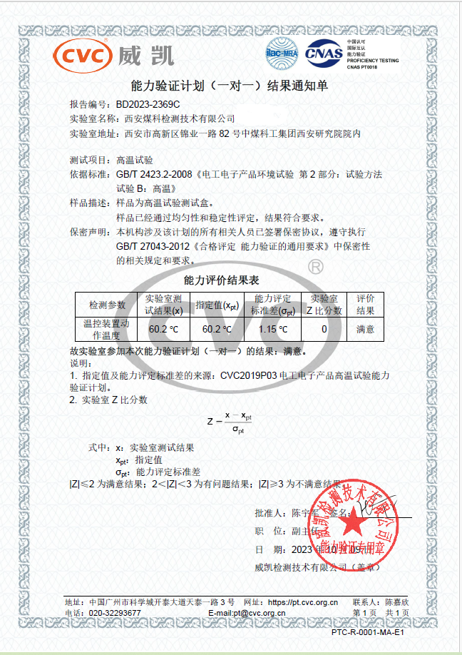 此次验证计划由威凯检测技术有限公司组织,旨在评价实验室的电气产品爬电距离与电气间隙试验、工作电压试验、高温试验、绝缘电阻试验等能力的客观指标,作为亚洲认可标准最多的CB实验室之一,威凯检测技术有限公司是CNAS认可的国家重点实验室、检查验货机构、能力验证机构,其能力验证的指定值和能力评定标准差值更具典型性和代表性。