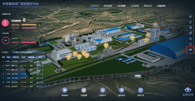 “基于磁耘技术的选煤厂人员定位及安全防护系统研究与应用”项目研发了基于磁耘技术的选煤厂人员定位及安全防护系统,通过无源被动的自主导航定位,为选煤厂复杂环境提供了一种稳定、高效且抗干扰的全新人员精准定位技术支持;建立了选煤厂3D可视化显示平台,联动磁耘定位技术,实现了选煤厂人员的精准定位;开发了选煤厂智能监控报警系统,实现了生产过程中人员全方位、多维度安全预警,保障了选煤厂人员的安全。目前该成果已成功应用于包头能源李家壕选煤厂,实现了“无人值守、有人巡检”,为加快我国选煤厂智能化建设进程提供了强力的技术支撑。
