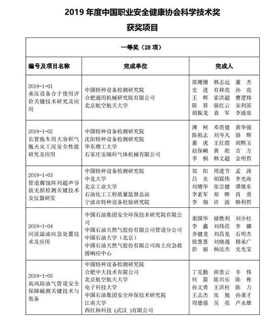 3.2018年中国职业安全健康协会科学技术一等奖--浅埋煤层富水沙层水害产生机理及防治关键技术研究,排名第2;