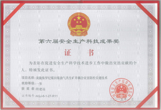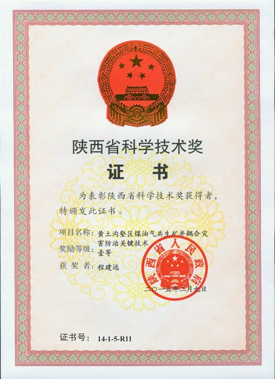 2 | 黄土沟壑区煤油气共生矿井耦合灾害防控关键技术 | 陕西省科学技术奖 | 一等奖 | 2015 | 11 |