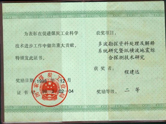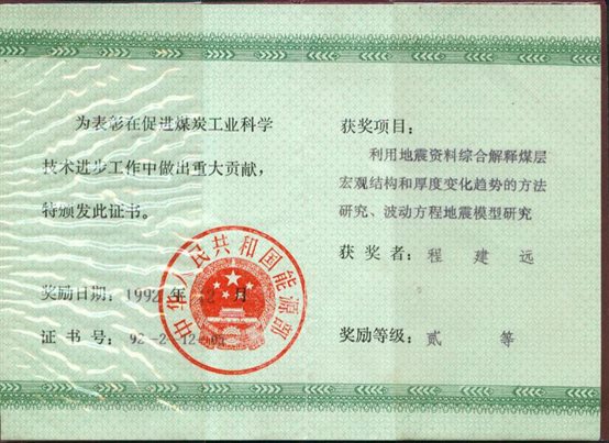 11 | 利用地震资料综合解释煤层宏观结构和煤层厚度变化趋势的方法研究、波动方程地震模型研究 | 煤炭工业科技进步奖 | 二等奖 | 1992 | 5 |
