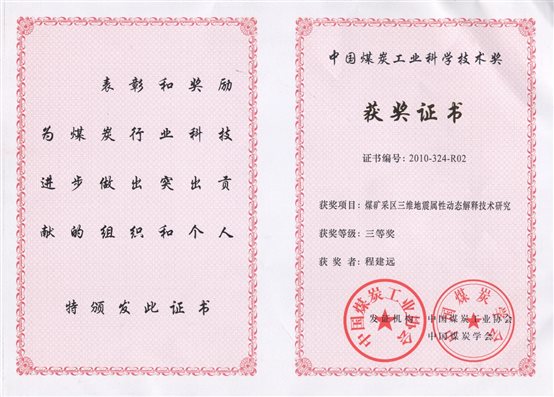 6 | 煤矿采区三维地震属性地质动态解释技术 | 中国煤炭协会科学技术奖 | 三等奖 | 2010 | 2 |