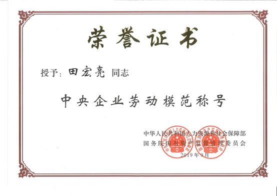 [6] 2019年获“中央企业劳动模范” 荣誉称号