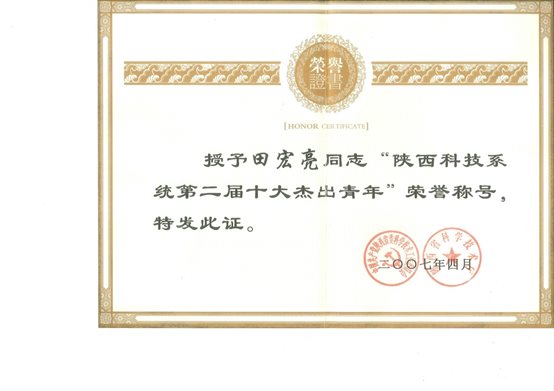 [2] 2007年获“陕西省科技系统十大杰出青年”荣誉称号
