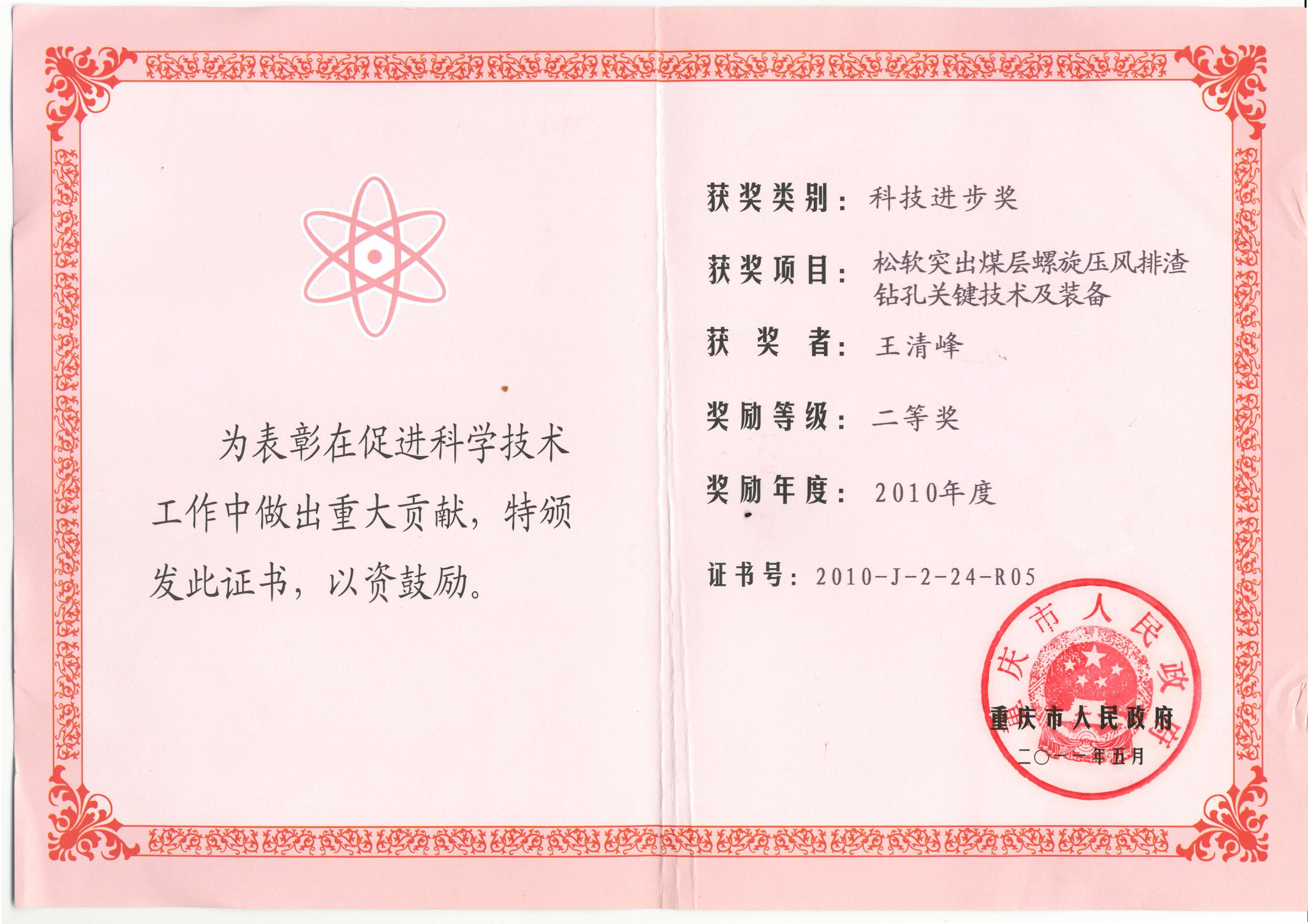 (1)作为主研人员,参加了国家“九五”攻关项目“突出煤层定向长钻孔预抽本煤层瓦斯的研究”的研究。项目成果获得煤炭工业协会科学技术一等奖。