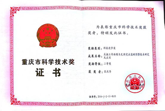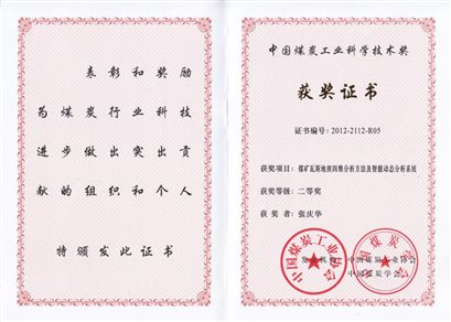 (2)发明了基于过程控制的突出综合监测预警方法,创建了突出危险性逐级预警指标体系和模型,研制了信息自动采集设备和监测预警系统,成果参加了由科技部组织的国家重大科技成果展以及由国家发改委组织的第十四届中国国际高新技术成果交易会,同时国家煤监局将该成果列为首批“四个一批”适用推广技术;