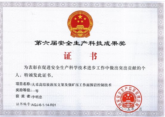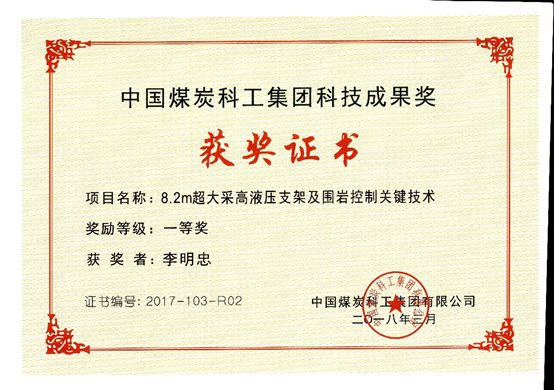 1、研制了世界首套8.2m超大采高液压支架,攻克了8.2m厚煤层一次采全高技术难题,研发了大断面顺槽超前支护技术和智能喷雾系统,完善并发展了厚煤层开采技术理论体系。
