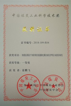 1、特厚煤层大采高综放开采成套技术与装备研发,2012年,中国煤炭工业科学技术特等奖,排名第20;
