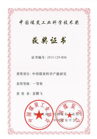 4、中国煤炭科学产能研究,2015年,中国煤炭工业科学技术一等奖,排名第6;