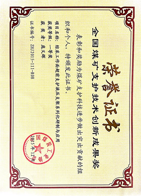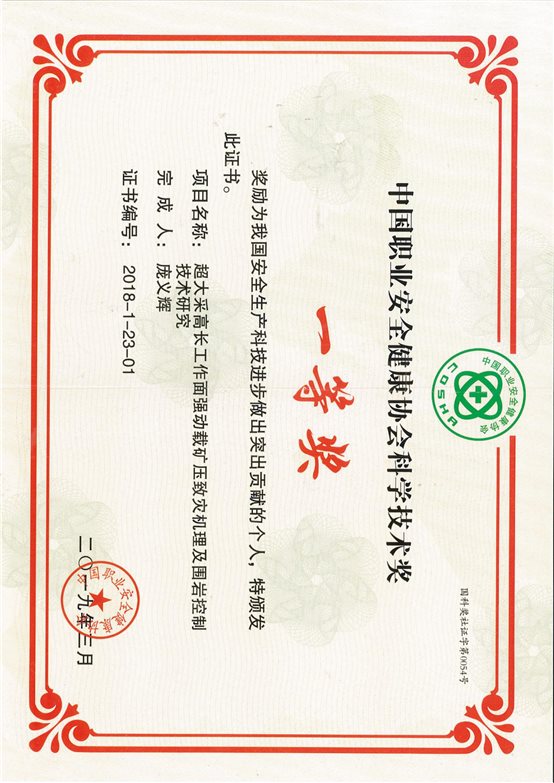1. 提出了超大采高工作面液压支架合理工作阻力确定的“双因素”控制方法,以及煤壁片帮的“两阶段”观点,为超大采高工作面围岩稳定控制提供了理论支持,研究成果先后在红柳林、金鸡滩等十多个超大采高综采工作面应用,获省部级一等奖。