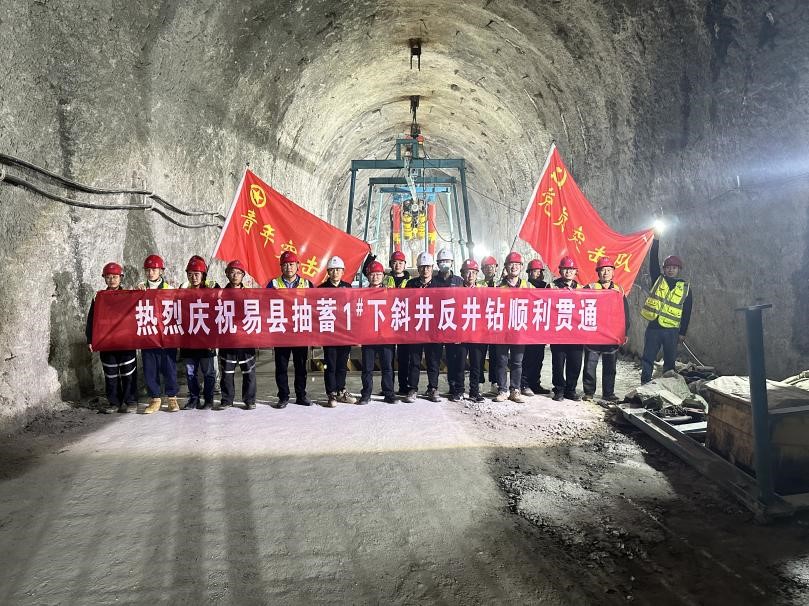 近日,由北京中煤承建的河北易县抽水蓄能电站1号高压管道下斜井导井工程顺利贯通。