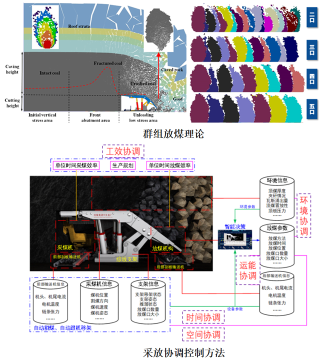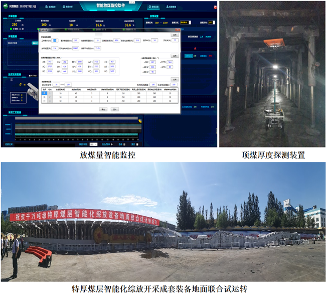 “千万吨级特厚煤层智能化综放开采关键技术及装备研发”揭示了特厚顶煤体的受控破碎机理,建立了大尺度顶煤体“三阶段-多级破碎”的特厚煤层综放开采破坏控制模型,提出了特厚煤层群组协同智能放煤工艺及控制理论,构建了基于“智能化放煤理论—智能化放煤方法—智能化放煤装备—智能化放煤控制系统”的智能化综放开采关键技术与装备体系,并在示范矿井成功应用,综放工作面年产量突破1500万吨、顶煤回收率超90%,经济社会效益显著,对推动我国特厚煤层矿区实现智能化综放开采具有重要借鉴意义。
