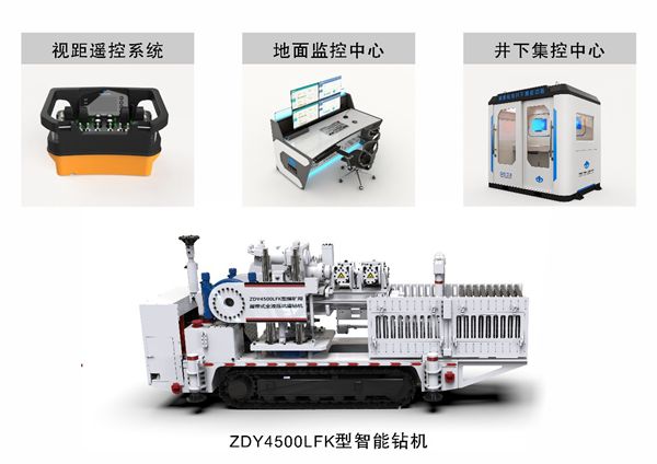 西安研究院煤矿井下智能钻探系统为矿井灾害防治带来了智能、安全、高效的钻孔施工解决方案,该系统由ZDY4500LFK型煤矿井下智能钻机、视距遥控系统、地面监控中心、井下集控中心、管理软件等组成,可通过智能化全自动钻孔施工和管理,实现煤层瓦斯突出、水害、冲击地压等井下灾害超前治理,大幅减少井下作业人员数量,提高人均施工效率,有效保障现场人员作业安全,大幅降低粉尘、噪声等带来的职业健康危害。